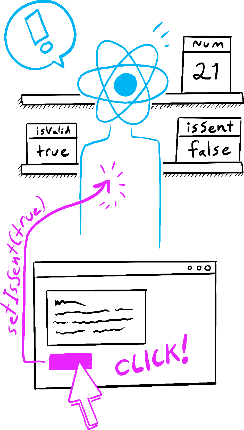 3. React renderöi uudelleen komponentin uuden isSent arvon mukaan.